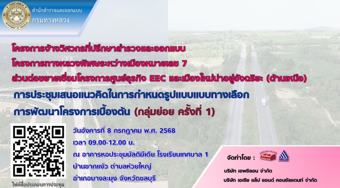 ด้วยกรมทางหลวง โดยสำนักสำรวจและออกแบบ ได้ว่าจ้างกลุ่มบริษัทที่ปรึกษา ประกอบด้วยบริษัท เอพซิลอน จำกัด ร่วมกับ บริษัท เอเซีย แล็ป แอนด์ คอนซัลแตนท์ จำกัด ให้ดำเนินงานบริการด้านวิศวกรรมการสำรวจและออกแบบรายละเอียด โครงการจ้างวิศวกรที่ปรึกษาสำรวจและออกแบบ โครงการทางหลวงหลวงพิเศษระหว่างเมืองหมายเลข ๗ ส่วนต่อขยายเชื่อมโครงการศูนย์ธุรกิจ EEC และเมืองใหม่น่าอยู่อัจฉริยะ(ด้านเหนือ)